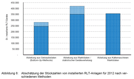 Installierte RLT-Anlagen (verschiedene Erhebungsmethoden) geschätzt in Deutschland:
